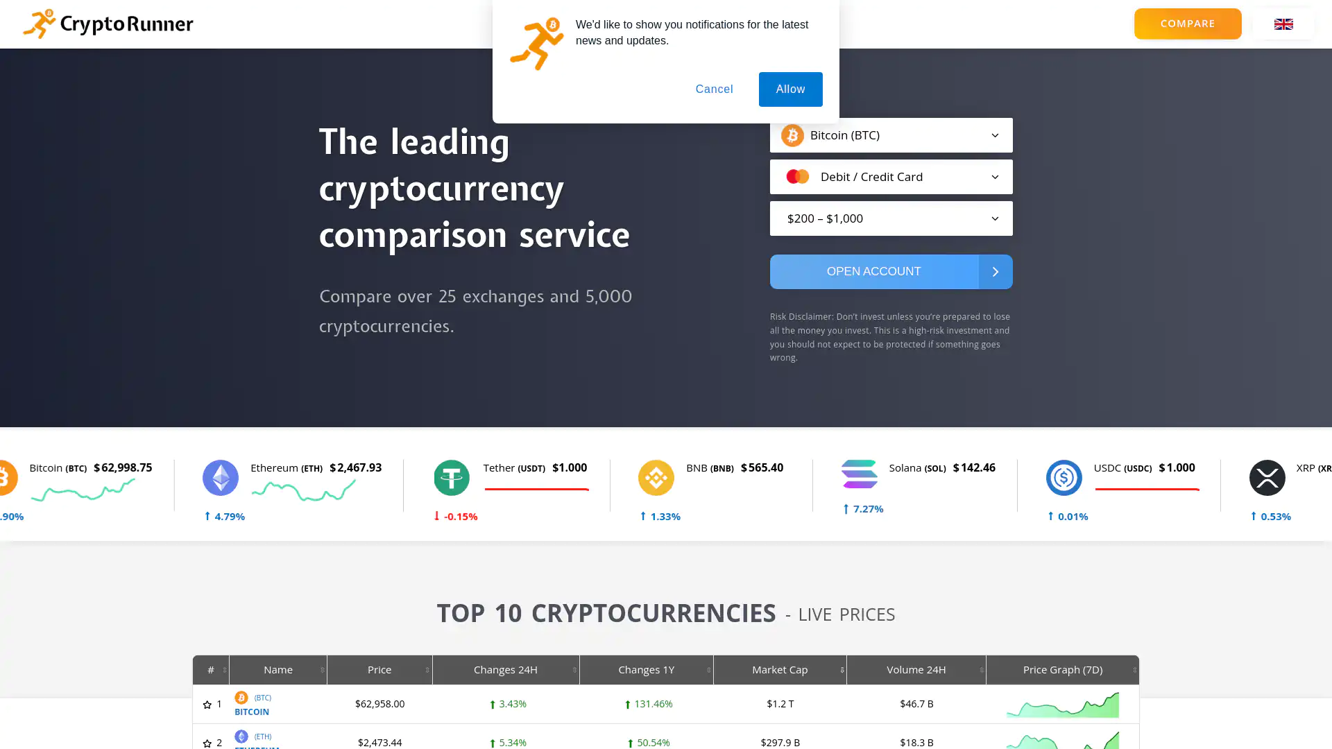 CryptoRunner offers an intuitive comparison tool that allows users to analyze a diverse array of cryptocurrency exchanges effectively. By inputting specific criteria, such as trading pairs, fees, and security features, traders can view side-by-side comparisons that highlight the strengths and weaknesses of each platform. This feature is particularly beneficial for users who want to ensure they are choosing an exchange that aligns with their trading strategies and financial goals. With real-time data, users can make informed decisions based on the latest market conditions. ๐ Additionally, CryptoRunner's comparison functionality extends beyond basic metrics. Users are provided with comprehensive insights, including liquidity levels, customer support ratings, and user reviews. This thoroughness ensures that traders not only see the quantitative aspects but also understand the experiences of other users. The combination of data and reviews makes CryptoRunner a valuable resource for navigating the crowded market of cryptocurrency exchanges, allowing users to find the most suitable platform for their trading activities. โ๏ธExploring Cryptocurrencies Offered