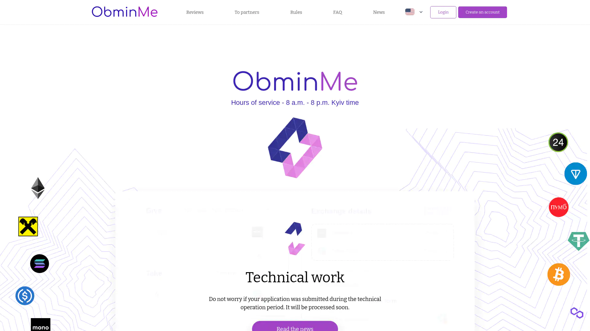 Obmin.Me is a newly launched cryptocurrency exchange service aimed at providing a seamless platform for trading various virtual assets. Positioned in the vibrant Ukrainian crypto market, it facilitates the exchange of fiat money for cryptocurrencies, making it accessible for both seasoned traders and newcomers. The platform offers an array of popular coins such as BTC, ETH, BNB, SOL, and more, catering to diverse trading needs. By focusing on a user-friendly experience and competitive fee structure, Obmin.Me seeks to establish itself as a prominent choice among cryptocurrency enthusiasts. ๐ In addition to popular cryptocurrencies, Obmin.Me also supports Ukrainian projects like WhiteBit Token and Qmall. This unique aspect may appeal to local investors looking to engage with domestic initiatives. The platform's commitment to expanding its offerings daily is promising, suggesting potential for growth and adaptation in an ever-evolving market. With low transaction fees of just 0.22% for non-fiat exchanges and varying fees for fiat transactions, Obmin.Me is enticing for those who want to minimize trading costs. ๐ฐSupported Cryptocurrencies