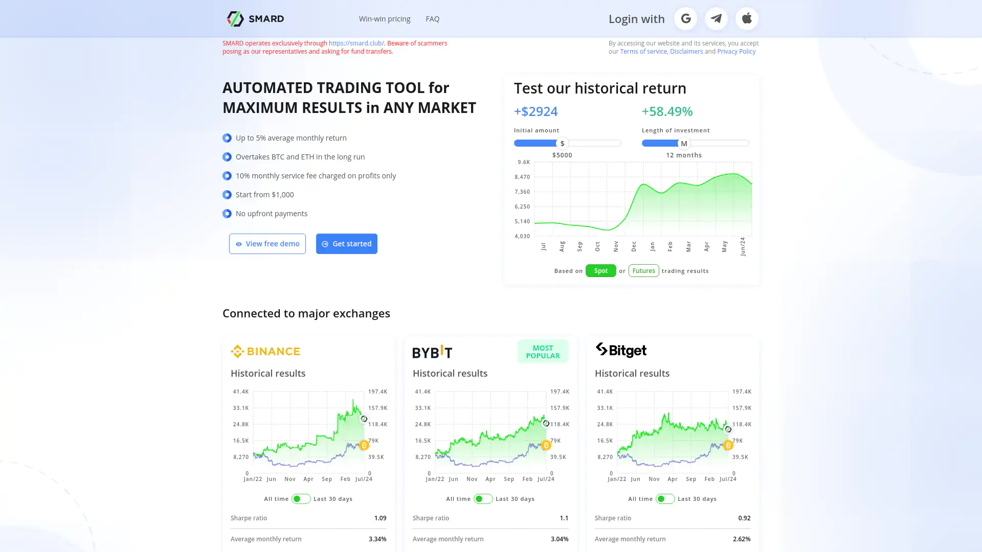 One of the standout features of SMARD is its sophisticated algorithmic trading system, which distinguishes it from other platforms by automating analysis and order execution. The software is designed to adapt to various market conditions, allowing users to benefit from both bullish and bearish trends. This flexibility ensures that traders can optimize their strategies without needing extensive market knowledge or experience. Additionally, SMARD offers a user-friendly interface that simplifies the trading process, making it accessible even for those who may be new to crypto trading. 📊 Another key functionality of SMARD is its transparent fee structure, which charges users only when profits are generated. This commission-based approach aligns the interests of the platform with those of the traders, fostering a partnership mentality. Moreover, SMARD integrates seamlessly with Binance, one of the largest cryptocurrency exchanges, ensuring that users can access a wide range of trading options, including spot and futures trading. Enhanced security through secure API connections means that users can trade confidently while maintaining control over their funds. 🔐Fee Structure and Payments